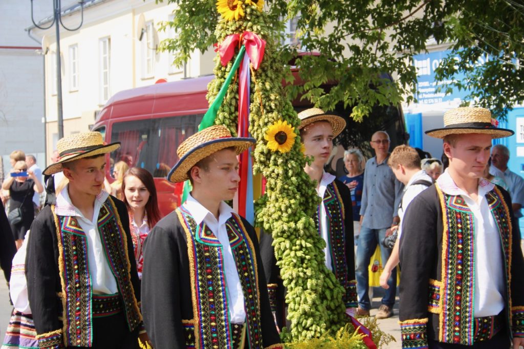 Krasnystaw is het belangrijkste hopgebied van het land en de naam Chmielaki verwijst naar het Poolse woord voor hop: chmel. Marinka en Lubelskie zijn de lokale hopsoorten die er verbouwd worden. Zondag is het tijd voor de mis ter ere van de hop en hoptelers. Vier jongens in klederdracht zetten een pyramidevormig bloemstuk van hop en zonnebloemen voor het altaar in de kerk. De kerk zit tsjokvol, mensen staan tot langs de kanten en zingen uit volle borst mee met het koor en het orgel. Na de optocht door de stad en een traditionele oogstdans door studenten van de polytechnische school uit Lublin is het tijd voor de prijzen: de snelste hopplukker, het beste bier, de grootste hopbel… De hopkoningin is al een dag eerder gekozen zodat ze bevallig en wel de prijzen kan uitreiken. De grootste hopbel was een Marinka van 65 millimeter. De familie van Rafal Sawicki is al generaties lang hopteler. Zijn geheim om de bellen zo groot te laten groeien: veel lachen naar de plant. En die lach, die proef je zeker terug in Piaski Nevada van brouwerij Trzy Korony, uitgeroepen tot het beste bier van het land. Maar dan wel de lach van een Amerikaanse hop ..