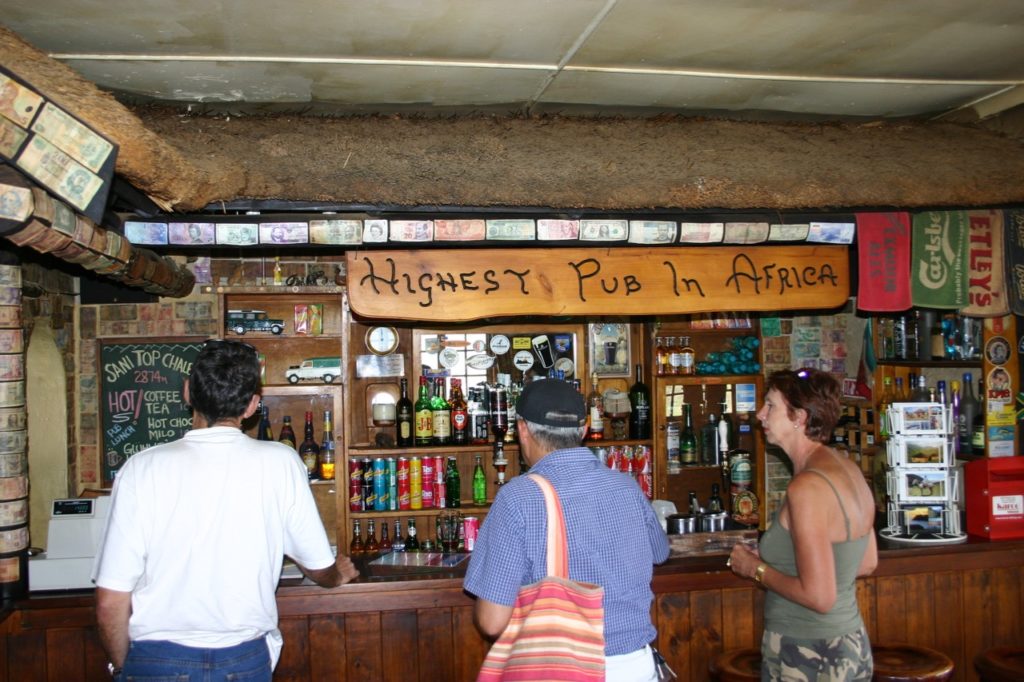 Het is een vreemde gewaarwording. Van buiten ziet de hoogste kroeg van Afrika er uit als een gewoon Zuidafrikaans huis, van binnen zou de stube ook in de Oostenrijkse Alpen kunnen staan. Om de pub staan de ronde hutjes waarin de Basotho wonen. Lesotho is een van de armste landen ter wereld. De werkloosheid loopt tegen de 40% en het percentage HIV is ook ongeveer zo hoog. Ondanks de armoede zet de kastelein ons in het Sani Top Chalet ons een voortreffelijk lokaal bier voor met de naam Maluti. Het is een pilsener in de Europese stijl. Je betaalt er een Europese prijs voor, zo’n twee euro voor een blikje.