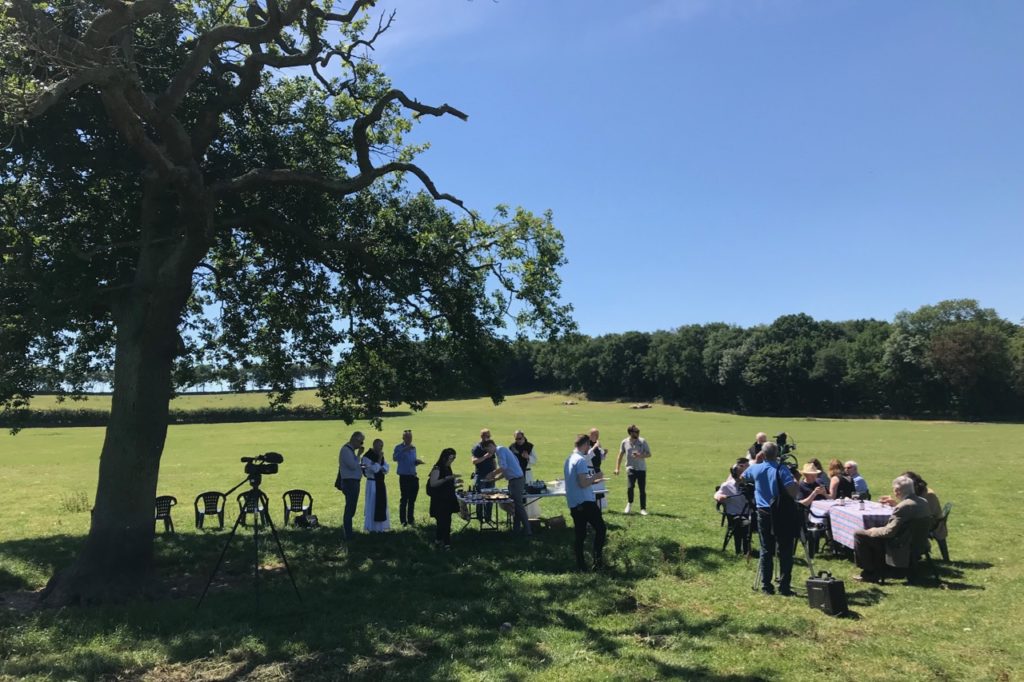 Zo krijgt het bier de naam Tynt Meadow. Dat is de naam van het weiland dat de monniken in 1835 cadeau krijgen om hun eerste abdij te bouwen. Een weiland met een lange geschiedenis, want het wordt al genoemd in het Domesday Book uit 1086. Deze lange geschiedenis is de inspiratie tot een etiket met een verhaal. Het is stilistisch heel eenvoudig, met de naam van het bier geschreven in een stijl van Cisterciënzer handschriften uit de Middeleeuwen. De onderkant van het etiket is niet recht, maar laat landschap zien, met Tynt Meadow en de kerk van de abdij. Simpel en effectief. De ontwerpers winnen er zelfs een Packaging Award mee.