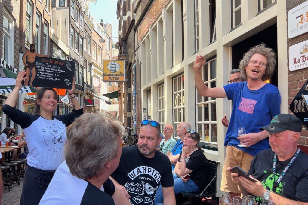 Bij De Wildeman presenteerde Sander Nederveen drie nieuwe experimentele bieren van Oedipus. En oh wat waren ze goed. De bieren hebben wel al een naam, maar nog geen etiket. Want, zoals Sander het uitlegde: het maken van een goed etiket is bijna zo moeilijk als het maken van een goed bier. En bij experimenten gaat het wel eens mis. Dat is het hele punt van experimenteren. Dus alleen als een experiment slaagt, wordt er een etiket gemaakt. In dit geval heeft Oedipus samengewerkt met de Amsterdamse ‘urban winery’ Chateau. Die laat druiven uit verschillende Europese gebieden komen om er in Amsterdam wijn van te maken. Voor het eerste bier kreeg Sander zo’n ongelooflijk grote hoeveelheid chardonnayschillen en steeltjes, dat het nauwelijks in de tank paste. Sander voegde er wort aan toe en liet daarna een saisongist z’n werk doen. Het bier mocht vervolgens twee en een half jaar rijpen op vat. We mochten het bier, dat Alice heet, proeven tegen de Chardonnay die Chateau van de most gemaakt heeft. De wijn is aardig, maar het bier is een gedicht van smaken. Het begint lieflijk, rond en sappig. Dan piept er een zacht zuurtje door, waardoor het een prachtige compositie wordt. Een hint van druif, wijn en appeltjes, een zweem van stal. Wat een feest. Van het bier met de schillen van de Tempranillodruif had ik een bommetje wrange tannines verwacht. Maar niets van dat al. De wijn gaf al een hint. Het is de lichtste en soepelste Tempranillo, die ik ooit dronk. Het resulterende bier (Rita), dat ook al in 2019 werd gebrouwen, heeft bijna iets snoepjesachtig, richting aardbei. Misschien komt het doordat een deel van de kracht al in de wijn zit. Rode wijn ligt nu eenmaal langer op schil en steel dan witte. Rita is lekker, maar ik mis de spanning van Alice in Wonderland. Voor het derde bier, met de naam Pinetta koos Oedipus voor een mengsel met wijn van de onbekende Vespaioladruif van het wijnhuis Contra Soarda uit de Italiaanse Veneto. Hierdoor is het bier wat zwaarder en ronder geworden dan de eerste twee.
