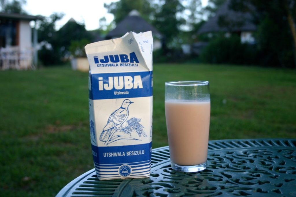 [2007] Van oudsher drinken de Zoeloes van Zuid Afrika een eigen soort bier, dat ze van sorghum brouwen. Wie een slok neemt van deze traditionele drank moet al zijn ideeën over bier bijstellen. Het wordt verkocht in kartonnen melkpakken van 1 liter. “Utschwala besizulu” – het bier van de Zoeloes – ruikt zuur als karnemelk. Als je het inschenkt ontstaat er geen schuimkraag. Utschwala is roze en ondoorzichtig als een glas Fristi. Ook klimmen er geen belletjes omhoog, zoals in het bier dat wij gewend zijn te drinken.De kenmerkende smaak is zachtzuur zoals ook volle yoghurt dat kan zijn. Ik heb niet het gevoel dat er alcohol in zit, en het ‘melkpak’ geeft daarover geen informatie.